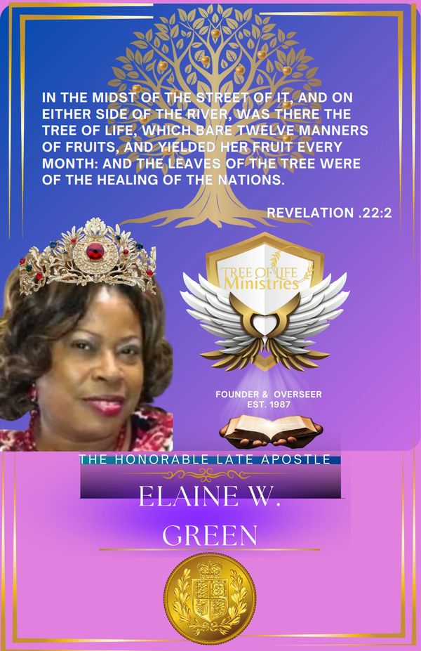 The Tree of Life ministries began in October 1987 by a divine visitation of God to Mrs. Elaine Washington Green.